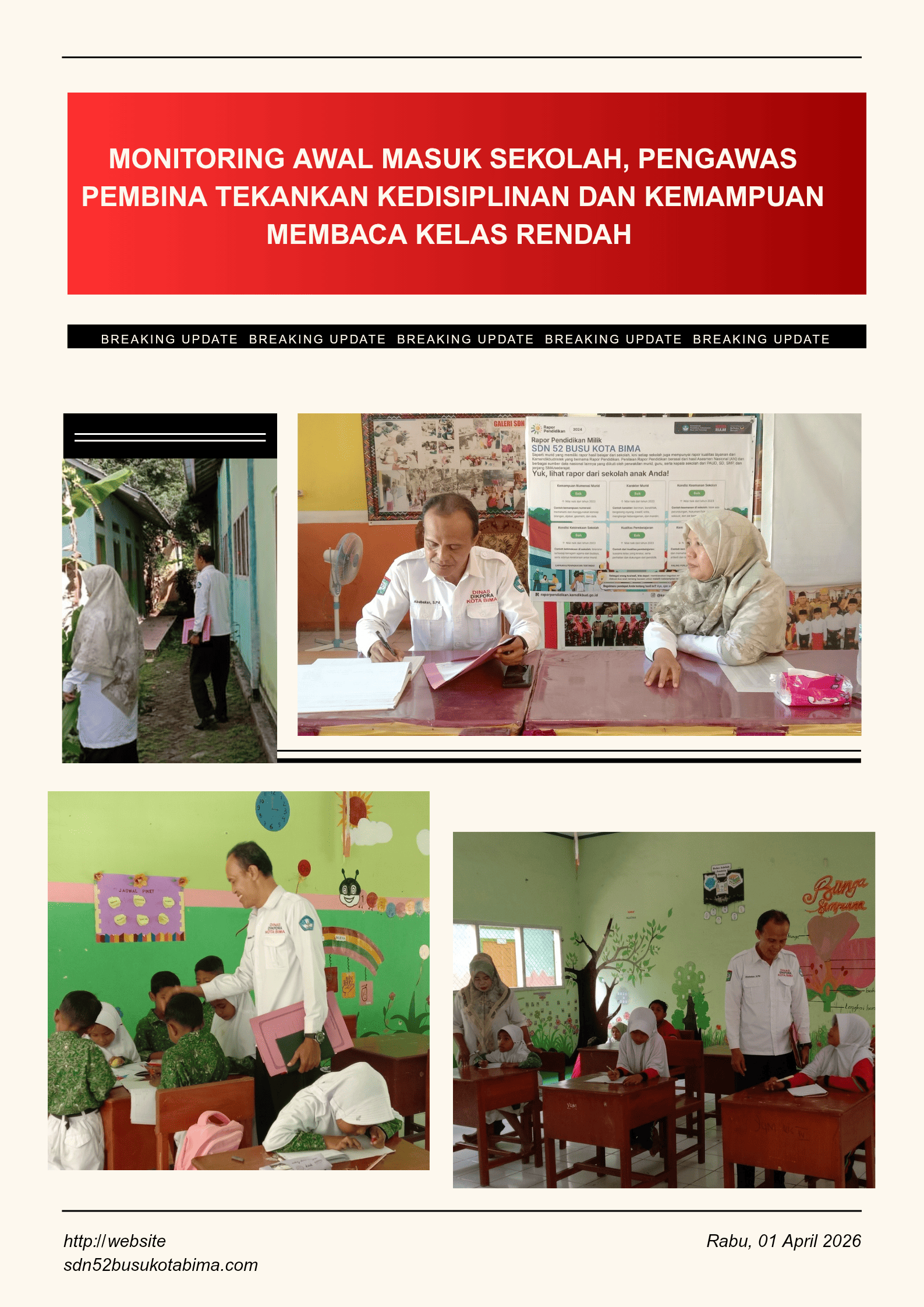 Kota Bima, 01/04/2026 – Dalam rangka memastikan kelancaran proses belajar mengajar di awal masuk sekolah, kegiatan monitoring dilaksanakan oleh pengawas pembina, Bapak Abubakar, M.Pd. Kegiatan ini bertujuan untuk meninjau langsung kesiapan sekolah, baik dari segi administrasi, kedisiplinan, maupun pelaksanaan pembelajaran di kelas.